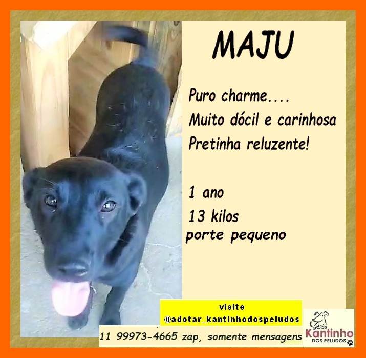 Adote Maju, uma adorável cadela de 1 ano. Amorosa, sociável e perfeita para alegrar seu lar. Conheça essa companheira fiel e transforme sua vida.