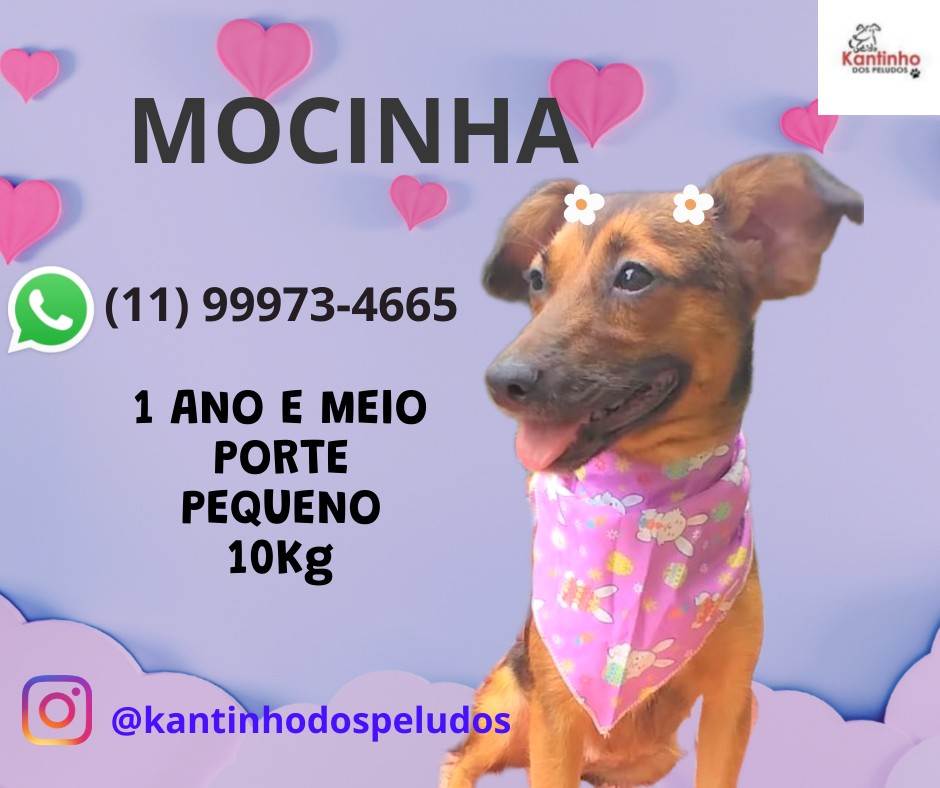 Adote a Mocinha, uma cachorrinha adorável de 10 kg e 1 ano e meio. Dócil, brincalhona e perfeita para famílias. Encontre seu lar amoroso!