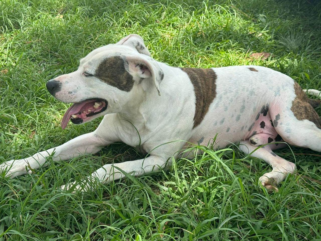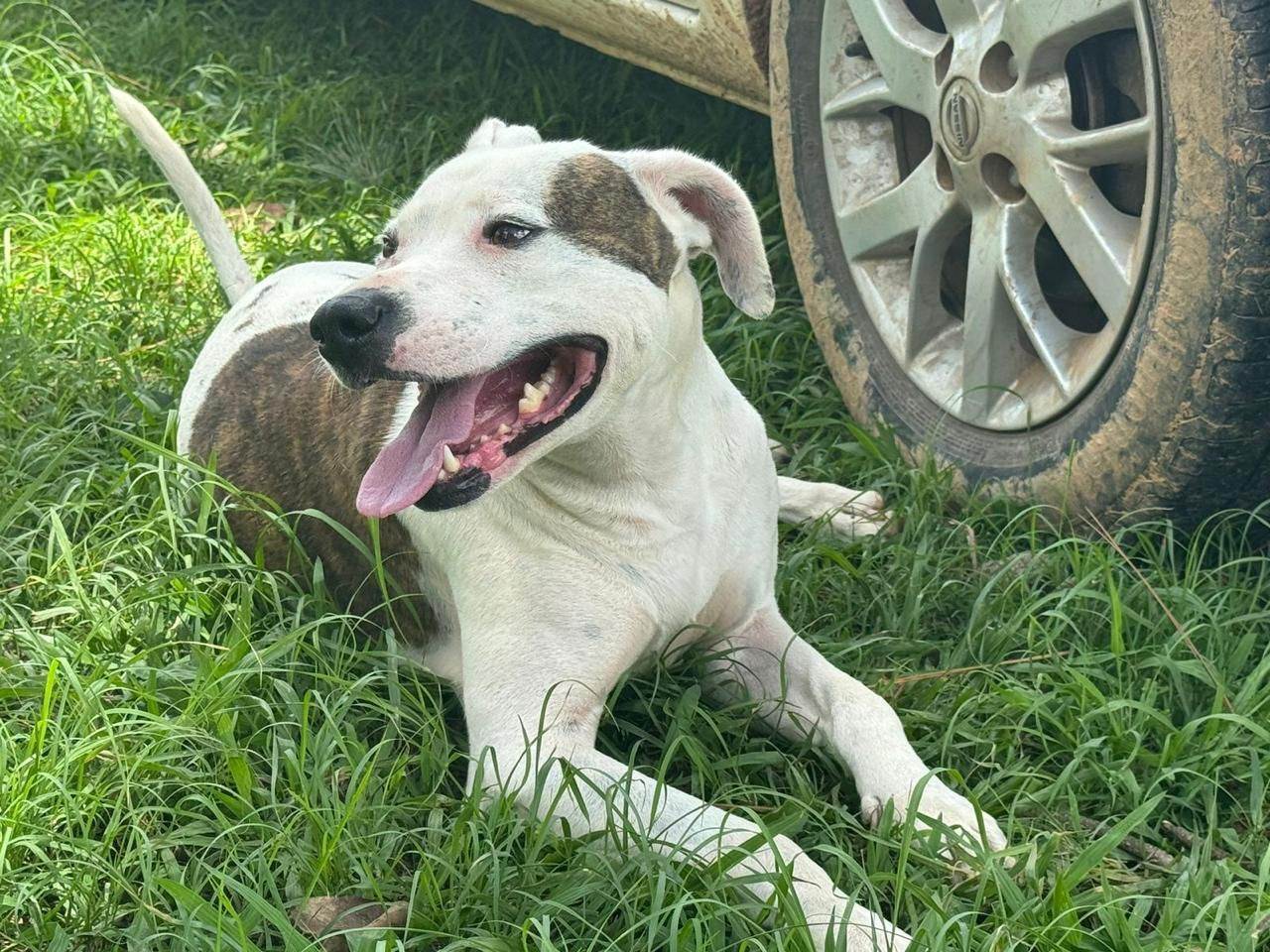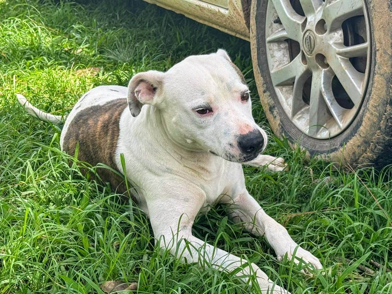 Cachorro grande, 2 anos, Pit-Bull, cor Branca.