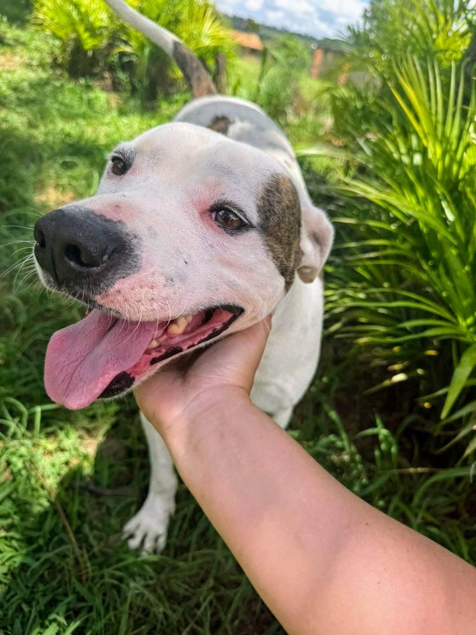 Conheça o Theo, um lindo Pit-Bull de pelagem branca e porte grande que está à procura de um lar amoroso. Com 2 anos de idade, Theo é um cão castrado, vacinado e vermifugado, pronto para se juntar à sua família.